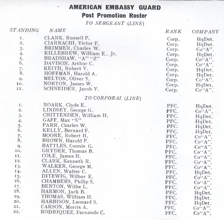 The North China Marine part Two This poem was in the collection of Jacob Schneider as were the newpaper clippings which follow. "SHORT TIMERS GOODBYE" 'Tis many days I have tarriedIn dusty old "Bei Jing"And from the "Boars Nest" to the "Hills"Am known as a "Megwa Bing". But now boys I'm going to leave youAnd I swear I hate to goBut I'll soon be returningSo save me some old "Bee-Joe". I've paid my chits at the "D La Paix"And refinanced the "Alkazar"Helped out the folks in "Chien Men"And moved the "Olympics Bar" Put the "Golden Fan" on a paying basisAnd invested in "Son Ho Shin"Bought heavily of the "Saki"Since the Japs they moved in. Paid my dues at the "White House"And helped feed the "Rusky Hoard"Did my bit to keep "Hempels"From going by the board. Bought powder and rouge for "Mary"And shoes for "Madam Queen"Bought the fixtures in the "International"From the head to the tambourine. Had stock in the "White House"With its big bright displayAnd bought the kitchen utensilsWhen it changed to a "Cafe" Paid rent for the "Russian Princesses"And footed bills for their "Chow"Did my part for the Rifle Range "Farmers"In purchasing a brand new plow. I've played the horses at "Paomachang"And "Hai Alai" in TientsinAnd gave my bed to "Her Brother"You know, the one from "Harbin" Put a roof on "Thirty Seven"And a deck in "Number One"Bought beer in "Number Forty"While the sergeants had their fun. Bought coal for "Da Zar Lillie"And "Shura" her daily ginPaid the morning ricksha fareFor the "Home Loving Men" Moved the "Privates" to a mansionIn place of their rundown shackDrank my part of the "Vodka"In running up a "Stack" Took the girls to the "Cinema"And to dances at the "Legation Y"I'm leaving Peiping Buddy"Au Revoir", but not Good-Bye. The promotion roster below came out in either Sep or Oct of 41. By the time of capture the new stripes had been given out through Killebrew on the Sergeants list and through Battles on the Corporals list. The clippings below are from various sources in Peking in November of 1941 ![]() ![]() ![]() ![]() ![]() Click above to