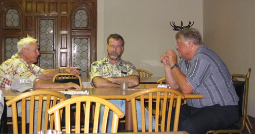and Bill is a retired Army LtCol. Below Bill Shippey listens to Frank Kossyta at left with John Powers in middle.